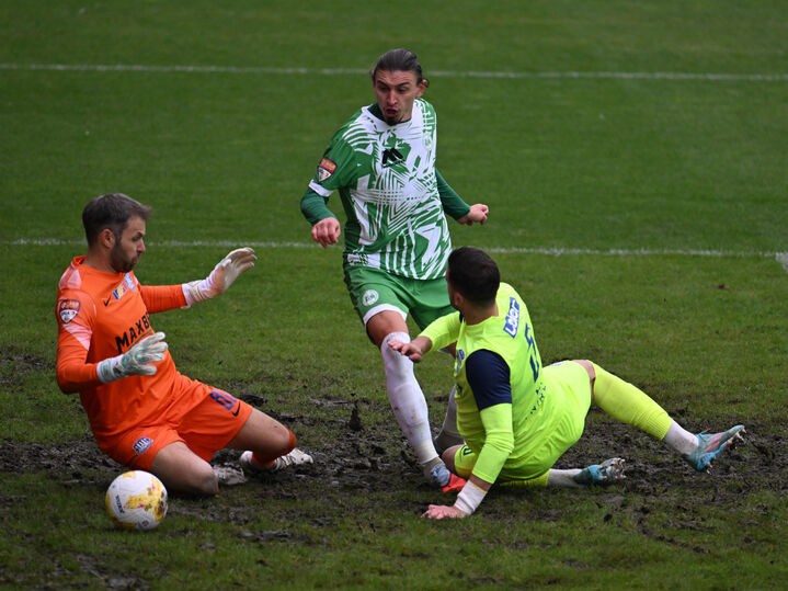 Descriere: Jesus Collado Fernandez, Rares Lazar si Vladan Vidakovic in meciul de fotbal dintre Concordia Chiajna si Politehnica Iasi, contand pentru Liga a-2-a Casa Pariurilor, desfasurat pe Stadionul comunal Concordia din Chiajna, sambata 4 octombrie 2025. © FOTO:Razvan Pasarica/SPORT PICTURES