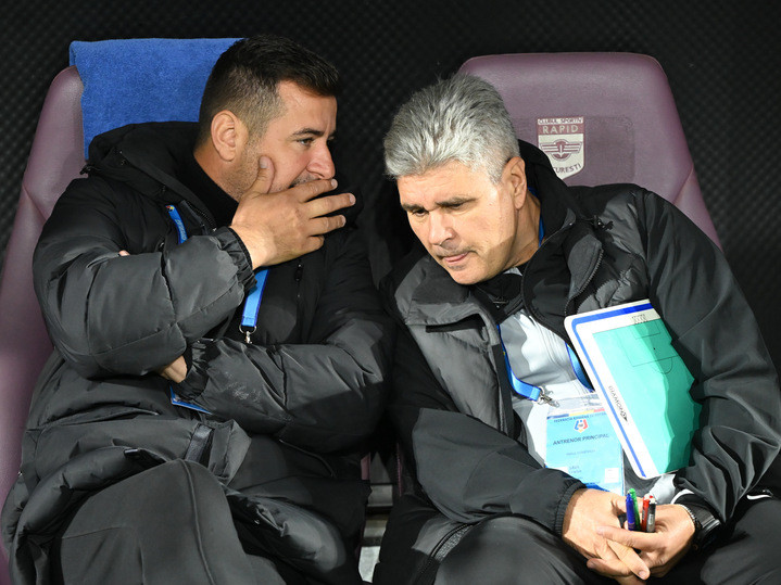 Descriere: Ianis Alin Zicu si Cristian Sava pe banca constanteana la meciul de fotbal dintre Rapid Bucuresti si Farul Constanta, din cadrul Superligii Superbet, desfasurat pe Superbet Arena-Giulesti din Bucuresti, sambata 4 octombrie 2025. © FOTO:Razvan Pasarica/SPORT PICTURES