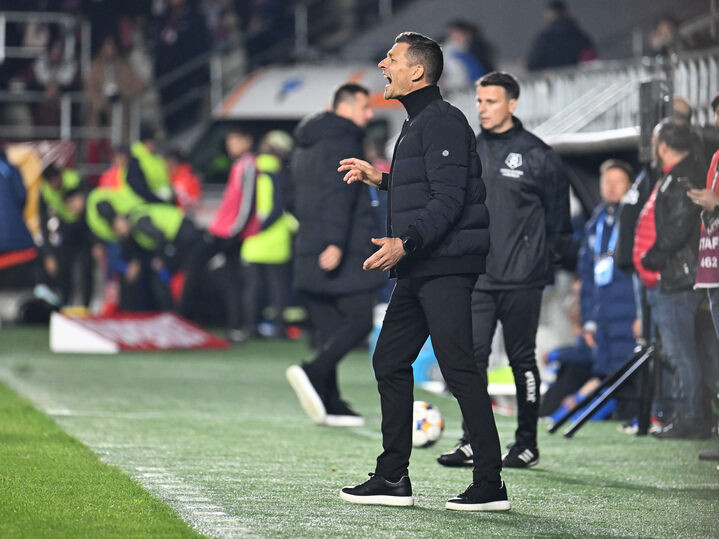 Descriere: Constantin Galca reacționează in meciul de fotbal dintre Rapid Bucuresti si Farul Constanta, din cadrul Superligii Superbet, desfasurat pe Superbet Arena-Giulesti din Bucuresti, sambata 4 octombrie 2025. © FOTO:Razvan Pasarica/SPORT PICTURES