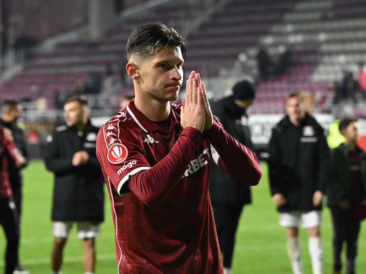 Descriere: Mihai Alexandru Dobre saluta galeria dupa meciul de fotbal dintre Rapid Bucuresti si Farul Constanta, din cadrul Superligii Superbet, desfasurat pe Superbet Arena-Giulesti din Bucuresti, sambata 4 octombrie 2025. © FOTO:Razvan Pasarica/SPORT PICTURES
