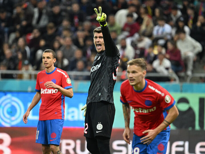 Descriere: Ștefan Târnovanu reacționează in meciul dintre FCSB si Universitatea Craiova, contand pentru Superliga Superbet, desfasurat pe Arena Nationala din Bucuresti, duminica 5 octombrie 2025. © FOTO:Razvan Pasarica/SPORT PICTURES