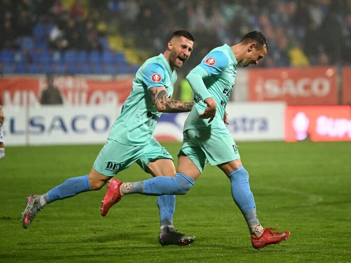 Descriere: Ovidiu Marian Popescu il felicita pe Valentin Ionut Costache dupa un gol marcat in meciul de fotbal dintre FC Botosani si UTA Arad, contand pentru Superliga Superbet, desfasurat pe Stadionul Municipal din Botosani, luni 6 octombrie 2025. © FOTO:Tudy/SPORT PICTURES