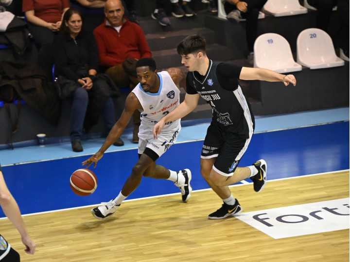 Descriere: Giordan Lee Watson si Luca Stefan Carstea in meciul de baschet masculin dintre CSO Voluntari si CSM Targu Jiu, contand pentru Liga Nationala Getica 95, desfasurat in Sala Gabriela Szabo din Voluntari, miercuri 8 octombrie 2025. © FOTO:Razvan Pasarica/SPORT PICTURES