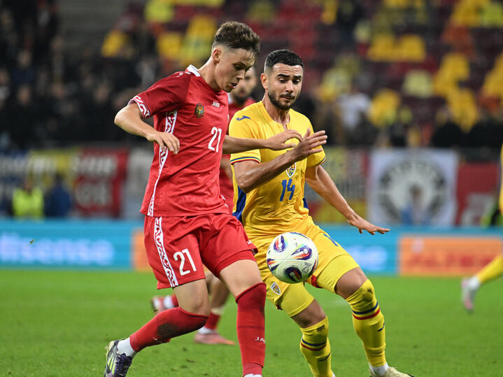 Descriere: Sergiu Perciun si Vladimir Screciu in meciul amical de fotbal dintre Romania si Moldova, desfasurat pe Arena Nationala din Bucuresti, joi 9 octombrie 2025. © FOTO:Razvan Pasarica/SPORT PICTURES