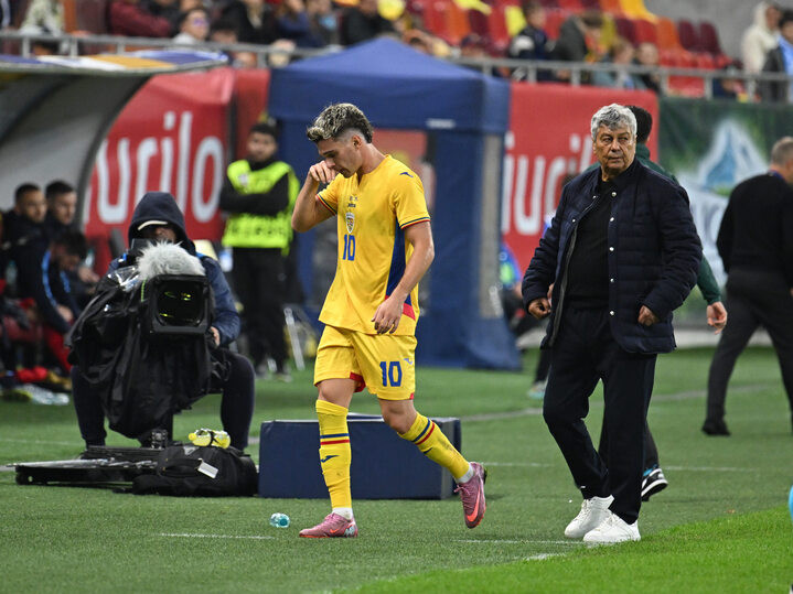 Descriere: Mircea Lucescu si Ianis Hagi la iesirea de pe teren din meciul amical de fotbal dintre Romania si Moldova, desfasurat pe Arena Nationala din Bucuresti, joi 9 octombrie 2025. © FOTO:Razvan Pasarica/SPORT PICTURES