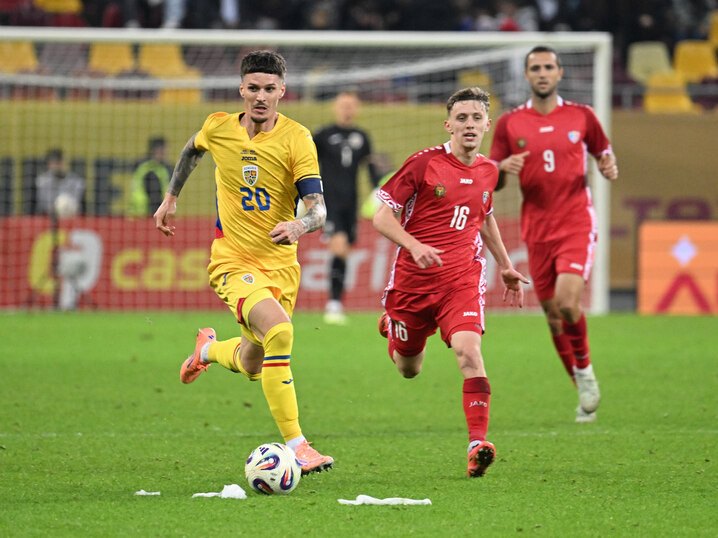 Descriere: Dennis Man si Danila Forov in meciul amical de fotbal dintre Romania si Moldova, desfasurat pe Arena Nationala din Bucuresti, joi 9 octombrie 2025. © FOTO:Razvan Pasarica/SPORT PICTURES