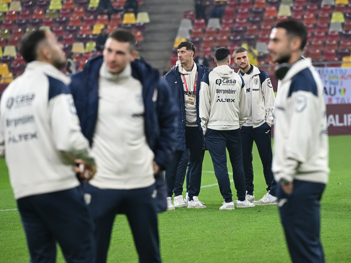 Descriere: Fotbalistii romani printre care David Miculescu si Daniel Birligea la inspectia terenului inaintea meciului de fotbal dintre Romania si Austria, din cadrul Preliminariilor Campionatului Mondial 2026, desfasurat pe Arena Nationala din Bucuresti, duminica 12 octombrie 2025. © FOTO:Razvan Pasarica/SPORT PICTURES