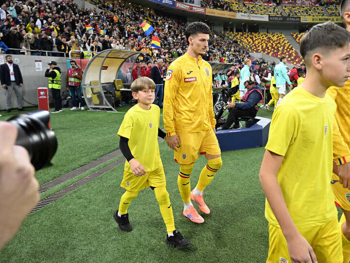 Descriere: Dennis Man la startul meciului de fotbal dintre Romania si Austria, din cadrul Preliminariilor Campionatului Mondial 2026, desfasurat pe Arena Nationala din Bucuresti, duminica 12 octombrie 2025. © FOTO:Razvan Pasarica/SPORT PICTURES