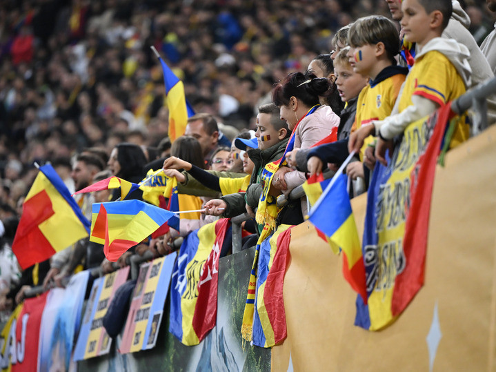 Descriere: Suporteri romani flutura steaguri tricolore in peluza la meciul de fotbal dintre Romania si Austria, din cadrul Preliminariilor Campionatului Mondial 2026, desfasurat pe Arena Nationala din Bucuresti, duminica 12 octombrie 2025. © FOTO:Razvan Pasarica/SPORT PICTURES