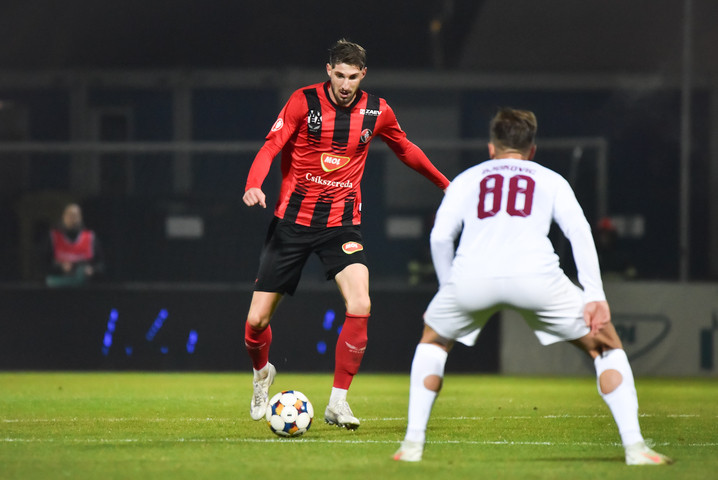 Descriere: Bence Végh in meciul de fotbal dintre FK Csikszereda Miercurea Ciuc si FC CFR 1907 Cluj, contand pentru Superliga Superbet, desfasurat pe Stadionul Municipal din Miercurea Ciuc, joi 16 octombrie 2025. © FOTO:Zoltan Pal/SPORT PICTURES