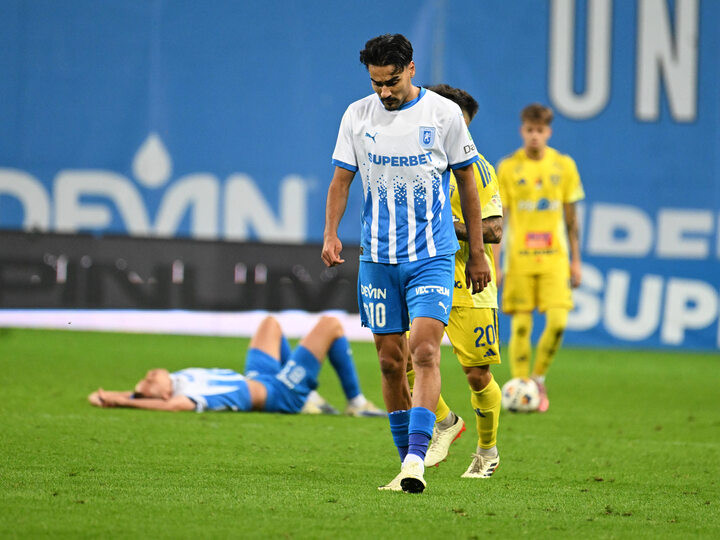 Descriere: Stefan Baiaram reacționează in meciul dintre Universitatea Craiova si Unirea Slobozia, contand pentru Superliga Superbet, desfasurat pe Stadionul Ion Oblemenco din Craiova, sambata 18 octombrie 2025. © FOTO:Razvan Pasarica/SPORT PICTURES