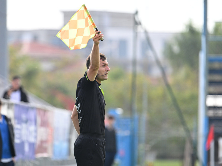 Descriere: Arbitrul asistent Viorel Dobre reacționează in meciul de fotbal dintre FC Voluntari si ASA Targu Mures, contand pentru Liga a-2-a Casa Pariurilor, desfasurat pe Stadionul Anghel Iordanescu din Voluntari, sambata 18 octombrie 2025. © FOTO:Razvan Pasarica/SPORT PICTURES