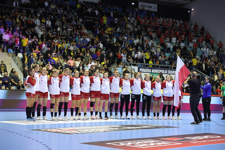 Descriere: Handbalistele poloneze la startul meciului de handbal feminin dintre Romania si Polonia, contand pentru EHF Euro Cup 2026, desfasurat in Sala Polivalenta din Craiova, duminica 19 octombrie 2025. © FOTO:Sorin Pana/SPORT PICTURES